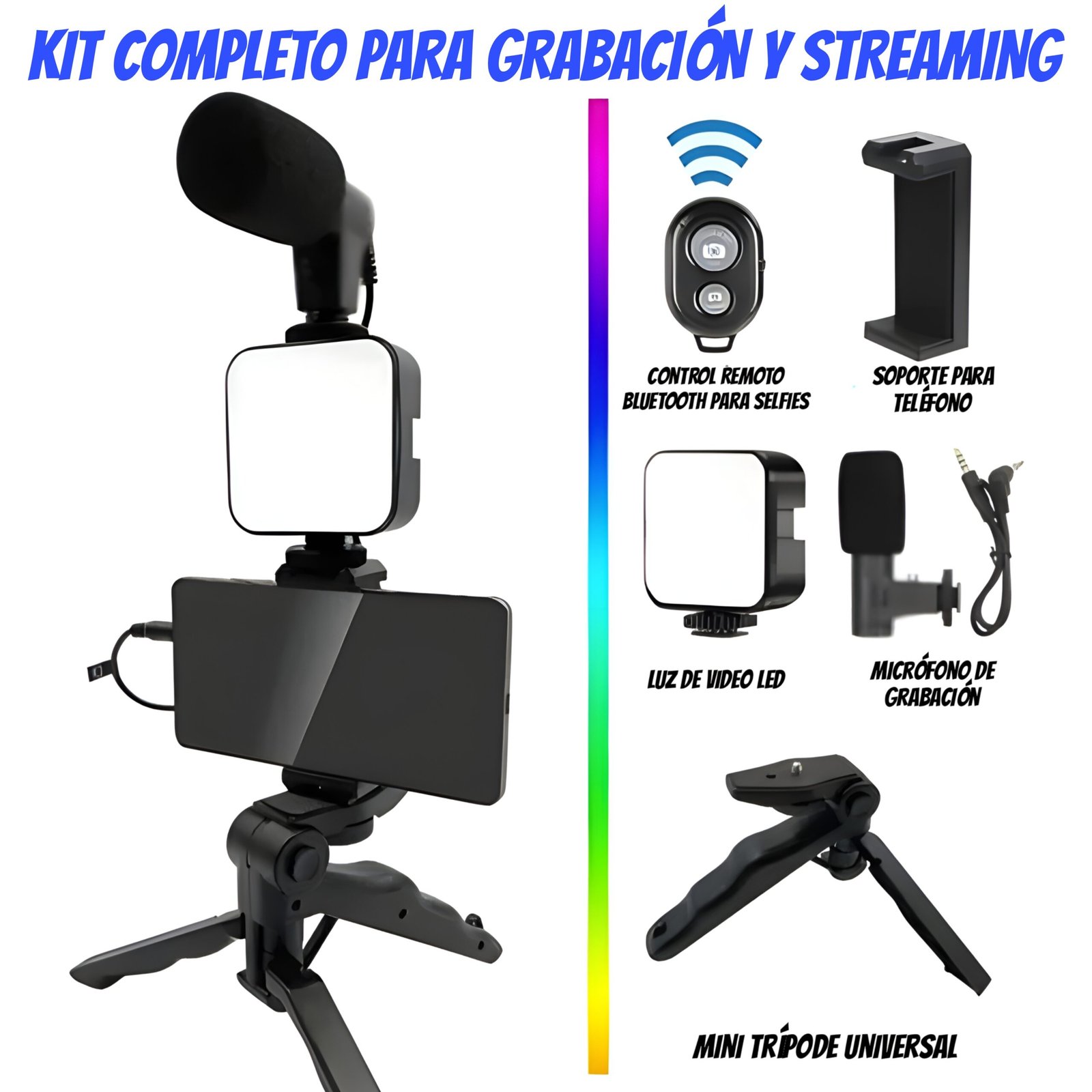 Kit Streaming Video y micrófono trípode Led Iluminador para celular