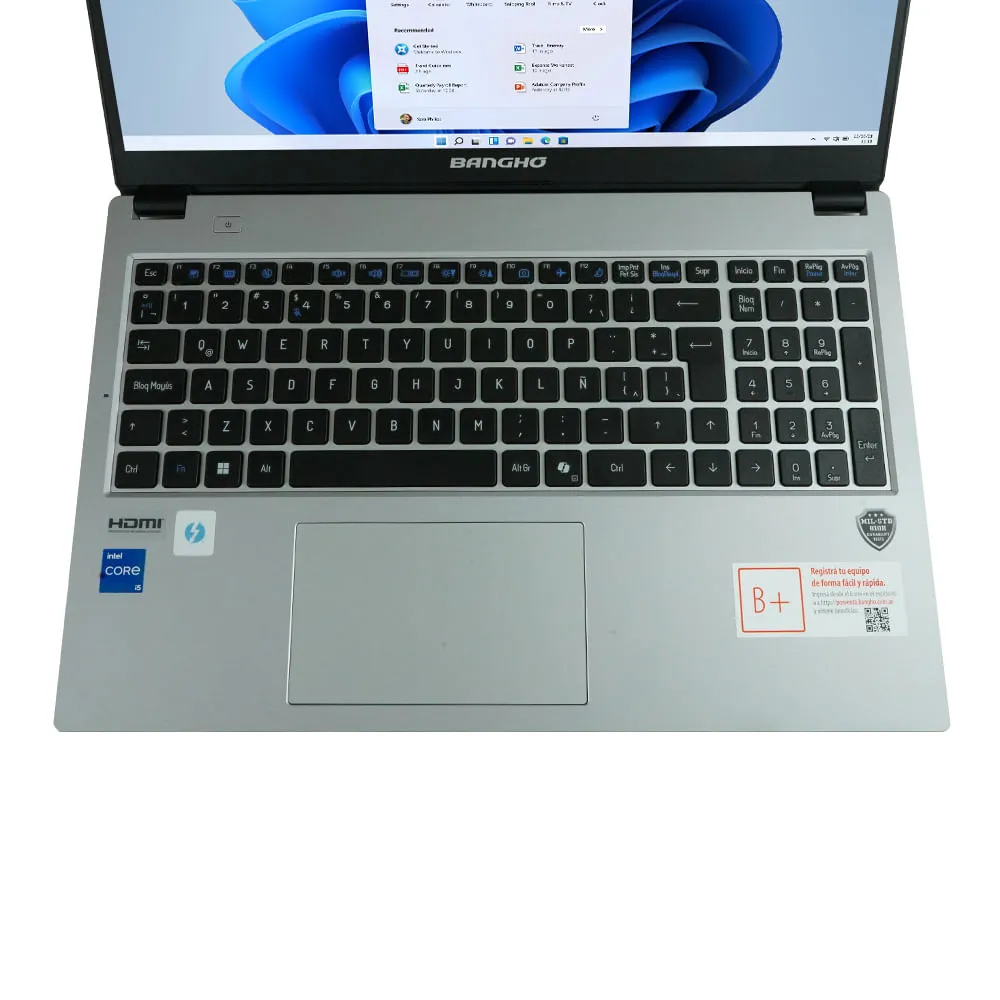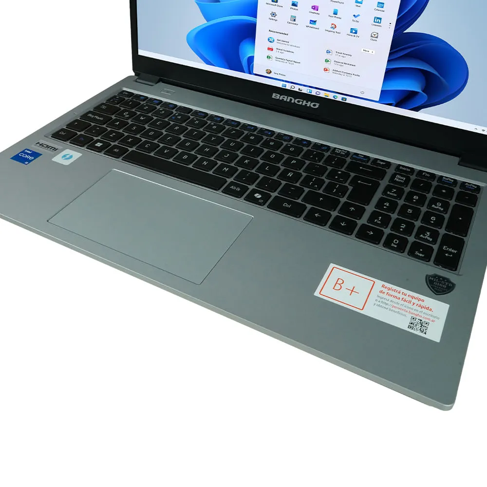 La Banghó Max M5 combina un diseño elegante con funcionalidad avanzada. Su estructura ligera y resistente es perfecta para trabajar desde cualquier lugar. Con múltiples opciones de conectividad, incluidos puertos USB, HDMI y tarjeta de red, te mantiene siempre conectado y operativo.