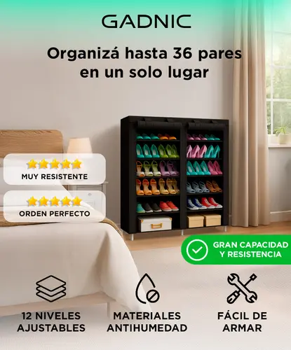 El organizador de zapatos GADNIC SHRACK01 destaca por su construcción de alta calidad. Fabricado con materiales duraderos, garantiza estabilidad y resistencia para el uso diario. Además, su diseño facilita el ensamblaje, permitiéndote armarlo en cuestión de minutos sin necesidad de herramientas adicionales. Este producto está pensado para ser práctico y funcional, asegurando que tus zapatos se mantengan organizados sin complicaciones.