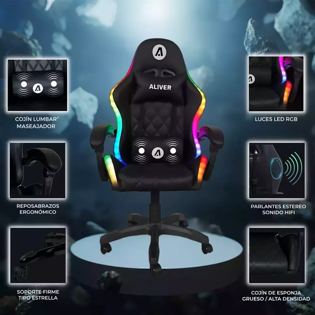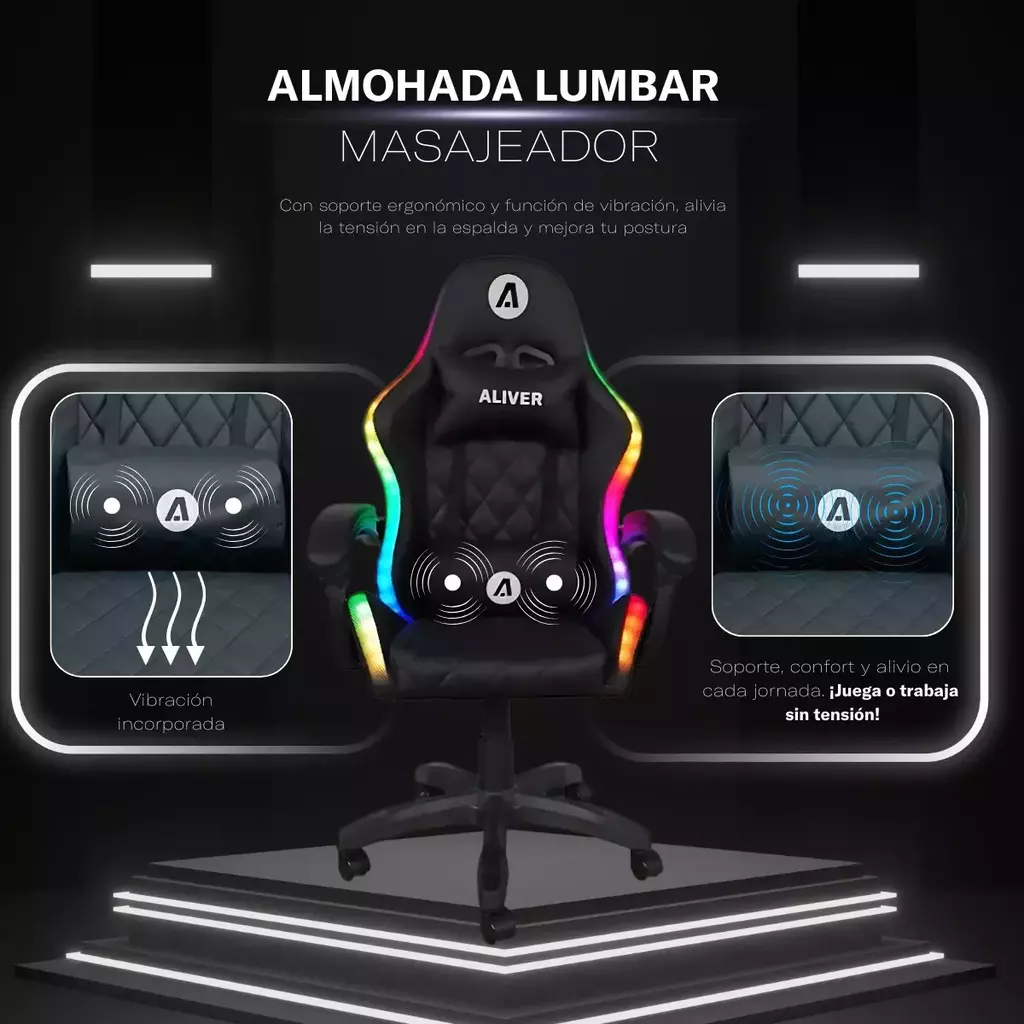 Pensada para tu máximo confort, la Silla Gamer Ergonómica Aliver Throne incluye una función de masaje que aliviará la tensión en tu espalda después de largas horas frente a la pantalla. Gracias a su control remoto intuitivo, puedes ajustar la intensidad y disfrutar de una experiencia personalizada. Este detalle convierte a esta silla gamer no solo en una herramienta de juego, sino también en una solución para el cuidado de tu bienestar físico.