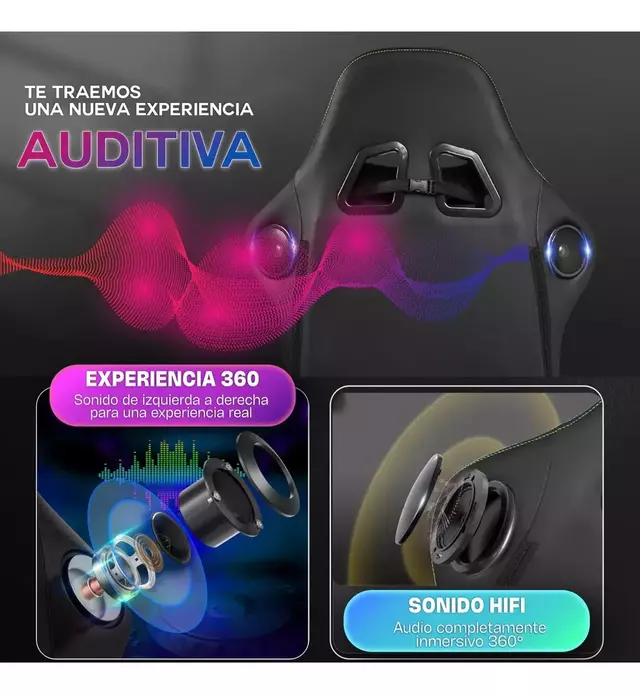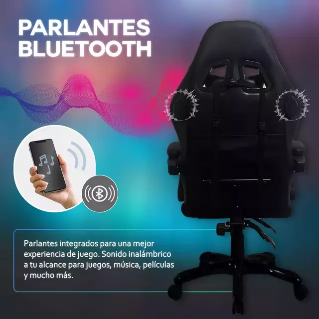 Dale un toque de estilo a tu espacio con la iluminación LED RGB de esta silla gamer. Puedes personalizar los colores para que se ajusten a tu configuración o estado de ánimo. Además, los parlantes integrados proporcionan una calidad de sonido envolvente para que tu experiencia de juego sea inmersiva y única. Ya sea para juegos, música o películas, esta funcionalidad se adapta perfectamente a tu estilo de vida.